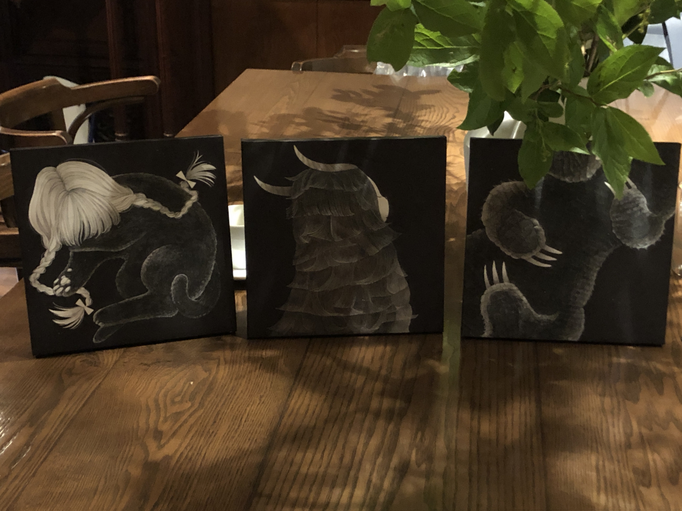 私は今まで2DCGや3DCGなどデジタル制作ばかりでしたので、肉筆画のパワフルさを味わいました。